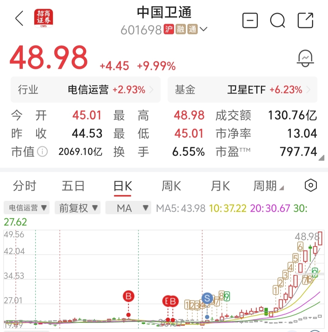 $中国卫通(SH601698)$ 也曾重仓过,那时的我不知道你的好,一旦错过就再也高攀不起。