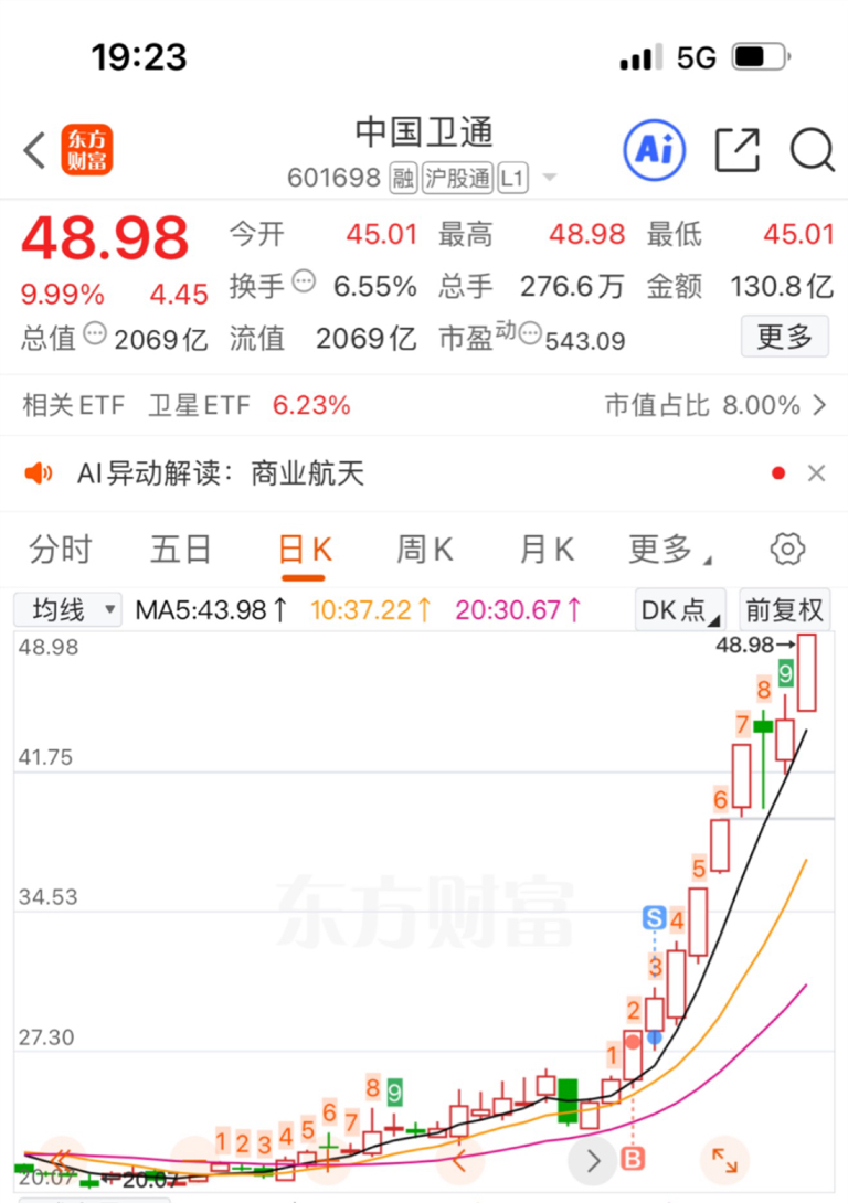 $中国卫通(SH601698)$ 做了个翻身梦