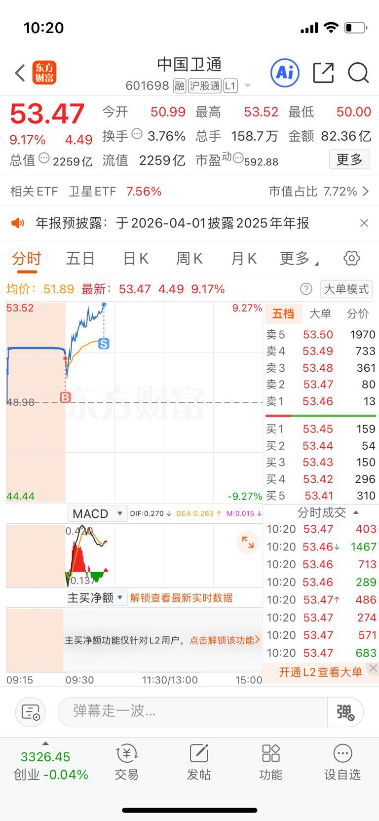 $中国卫通(SH601698)$ 做个T