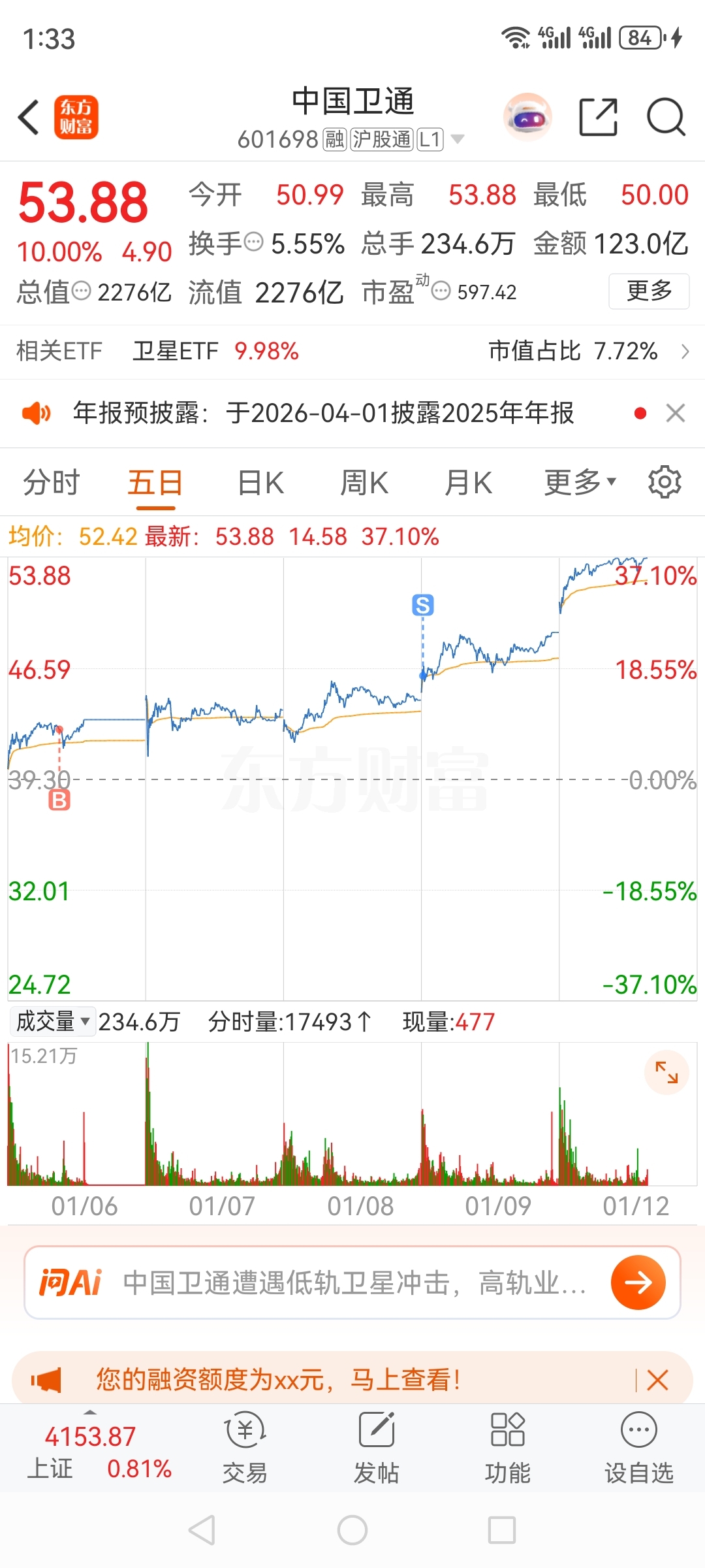 $中国卫通(SH601698)$ 什么都不说了,命中不带