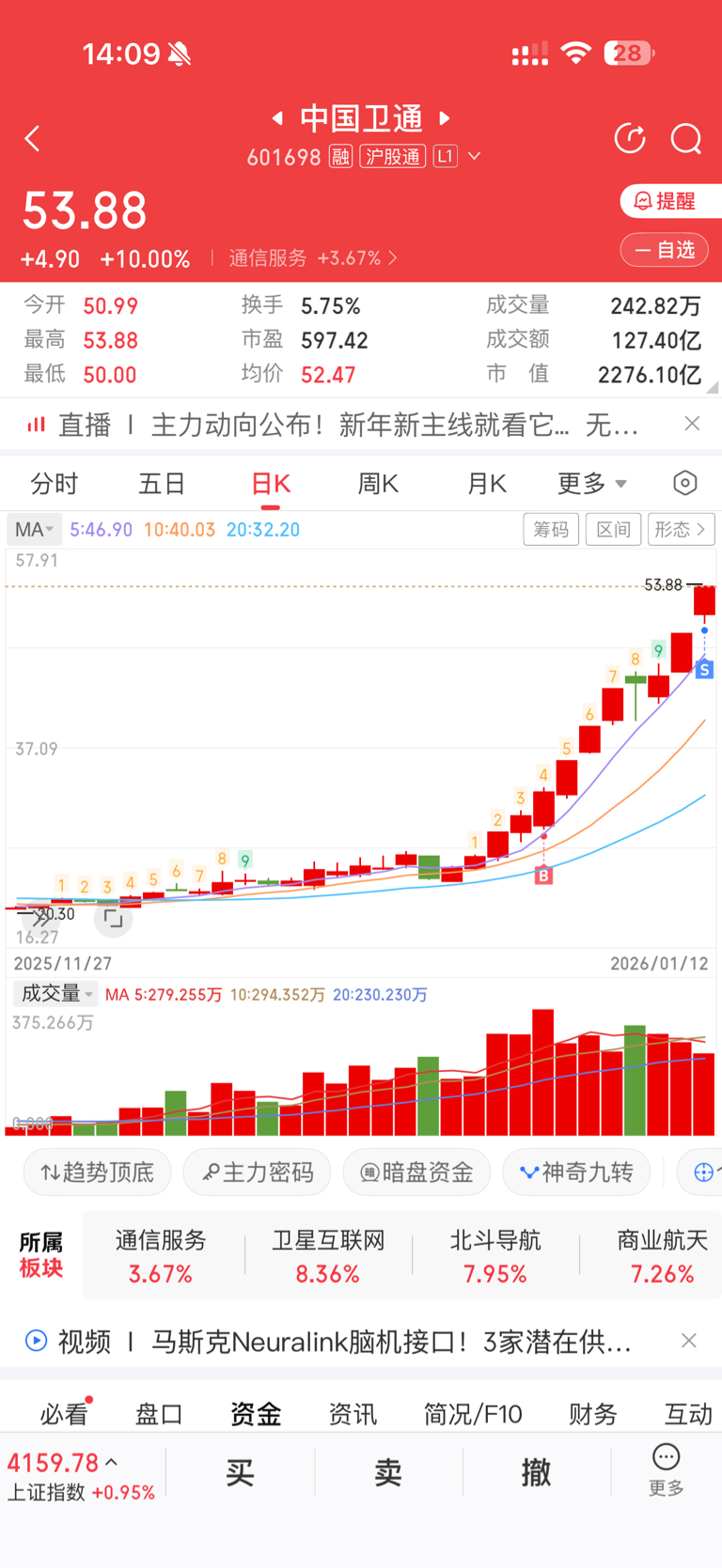 $中国卫通(SH601698)$ 走了,70cm肉到嘴了,进异动了后面再来,不进异动明天打板进