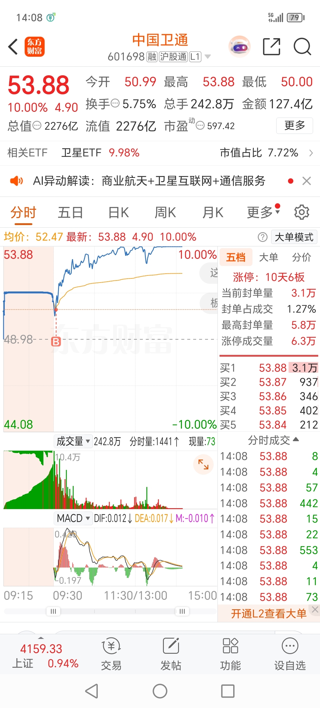 $中国卫通(SH601698)$ 周末选中了航天电子,中国卫星,中国卫通,达华智能,不晓得该买谁,问了妙想,它说中国卫通爆发力强可以考虑
