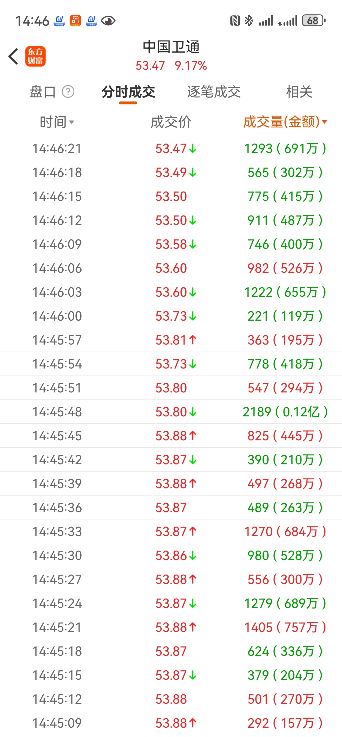 $中国卫通(SH601698)$ 出货了