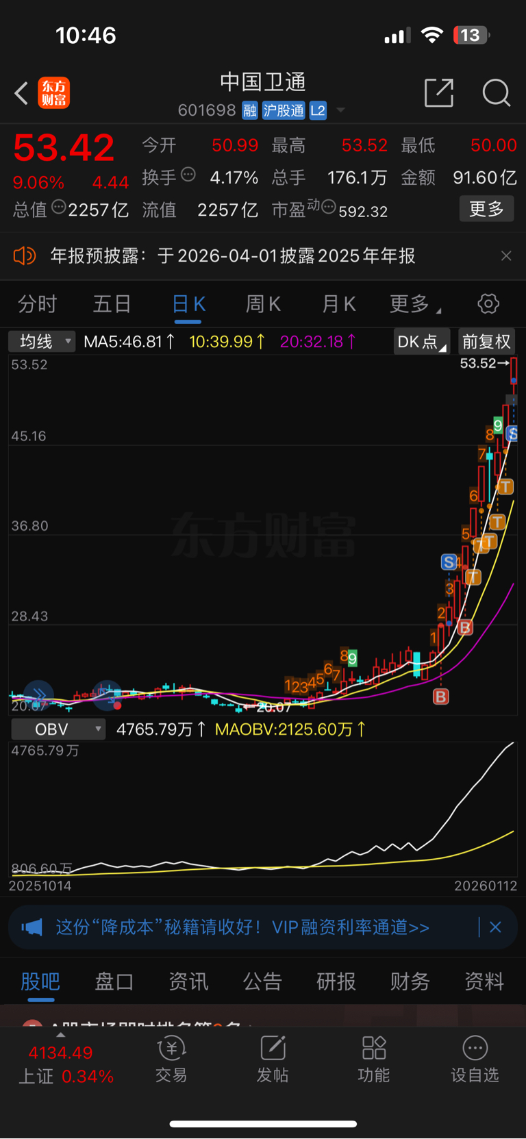 $中国卫通(SH601698)$ 超过异动走了,虽然没卖在最高位,也知足了,有机会再来给你们抬轿子