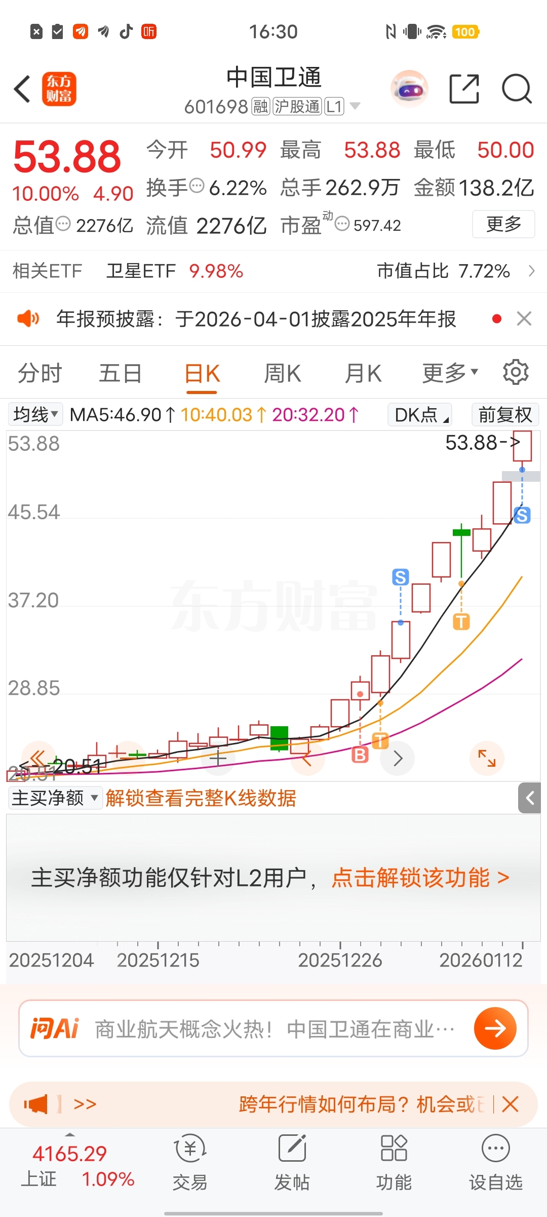 $中国卫通(SH601698)$ 今早上下车了,一来就猛跌,确实吓到我了,找个机会再上车,其实挺看好这家公司的,对标星链