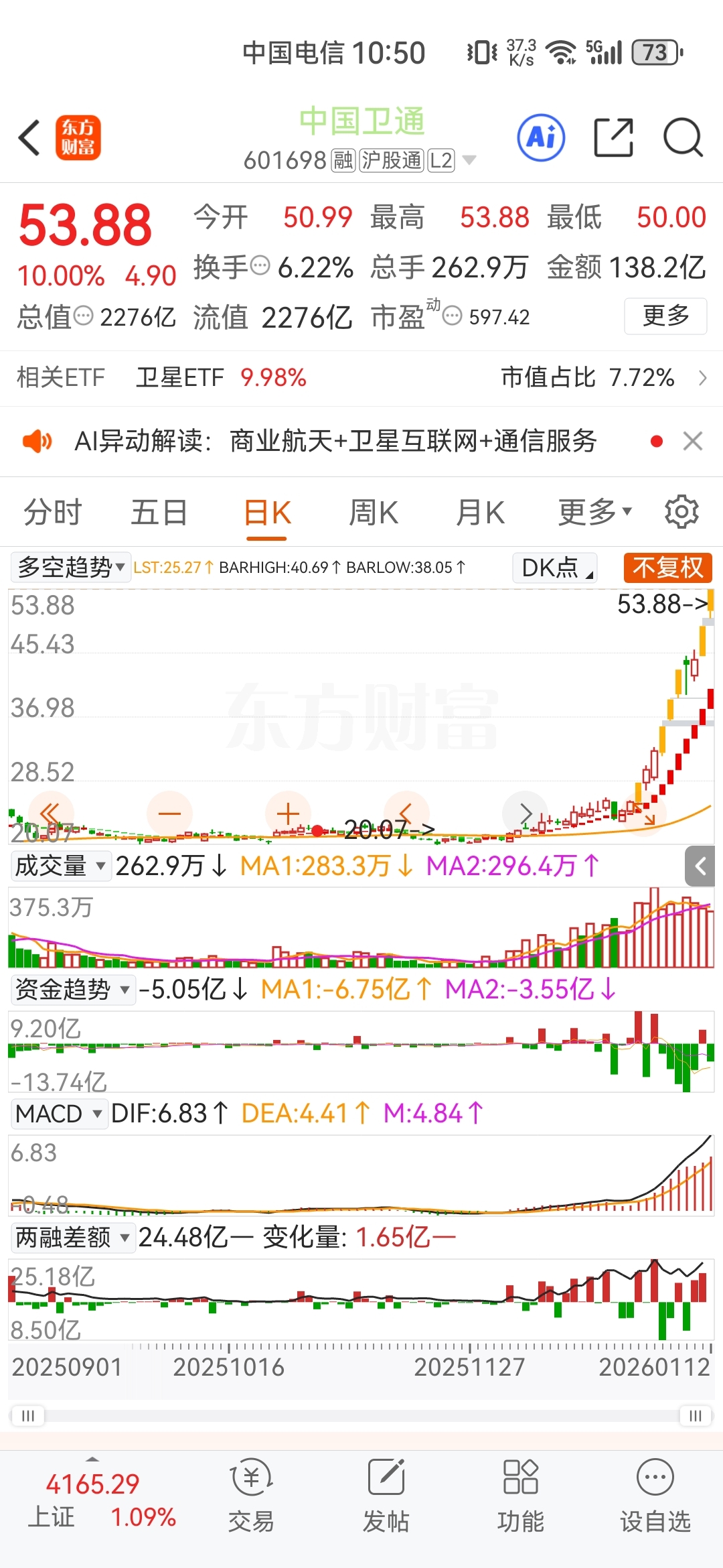 $中国卫通(SH601698)$ 马上暴跌!