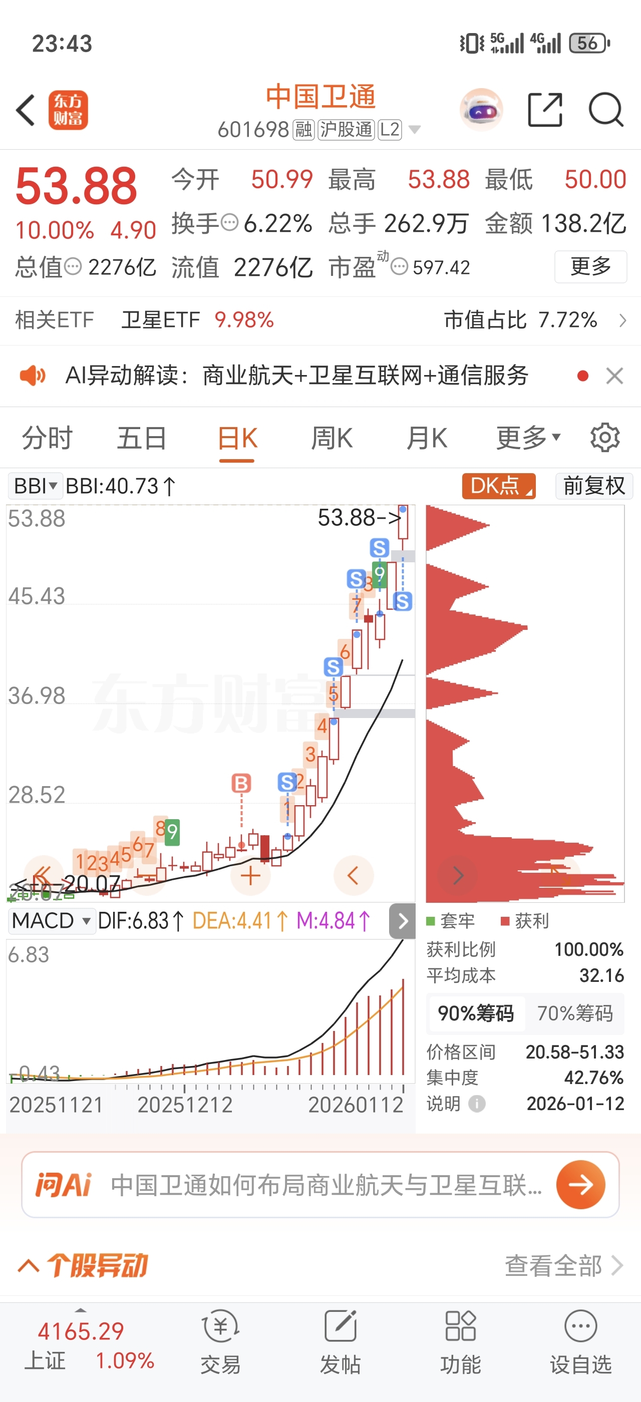 $中国卫通(SH601698)$ 谁拿了我的筹码,哭死了。