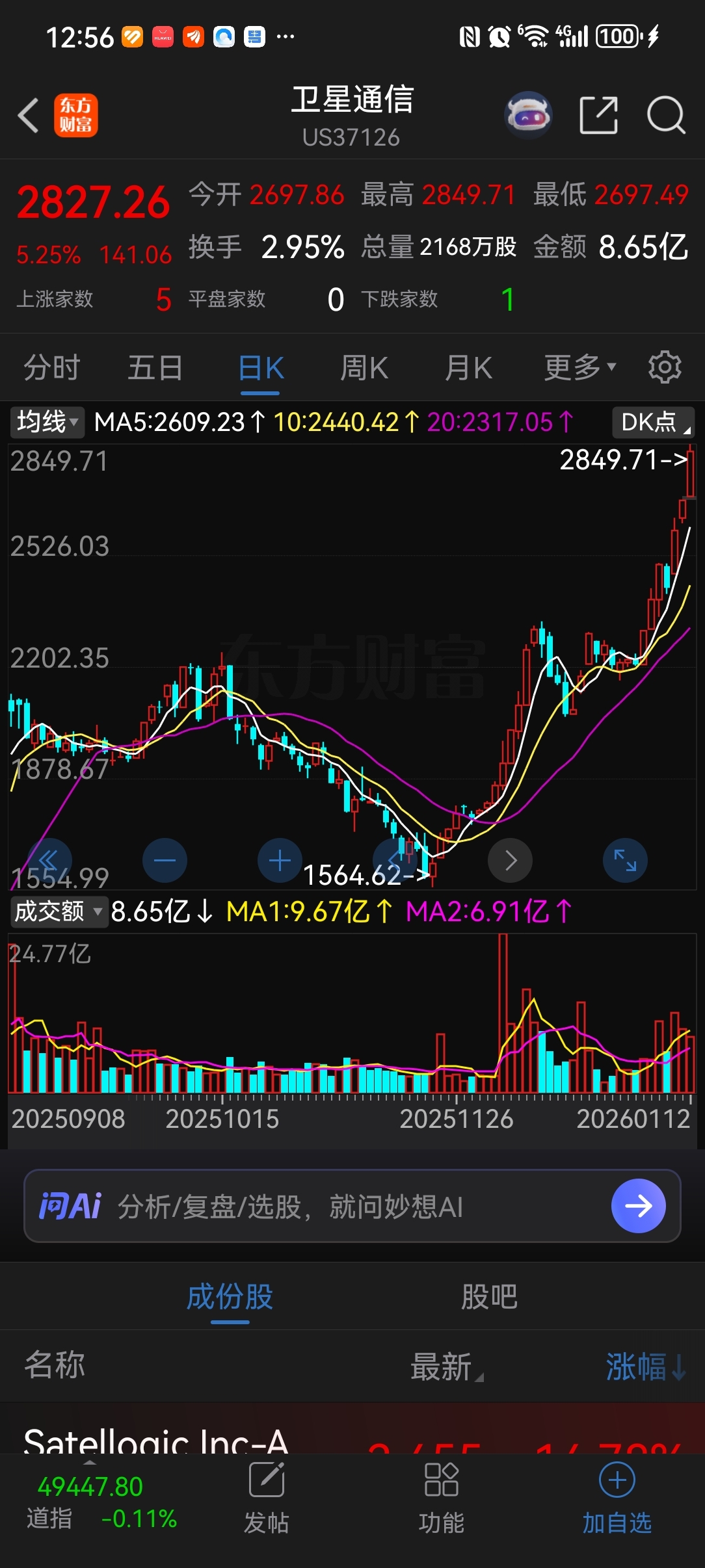 $中国卫通(SH601698)$ 美国卫星股暴力
