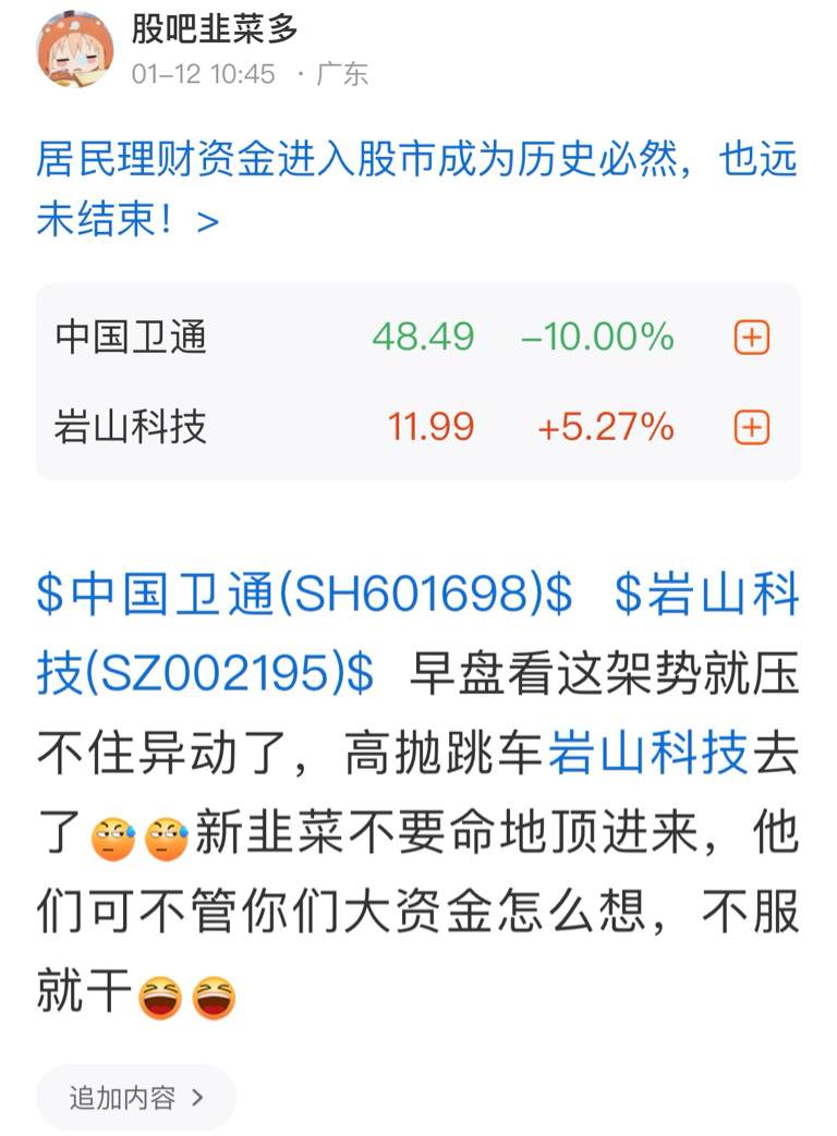 包括冲航天发展的韭菜。舒服了吧