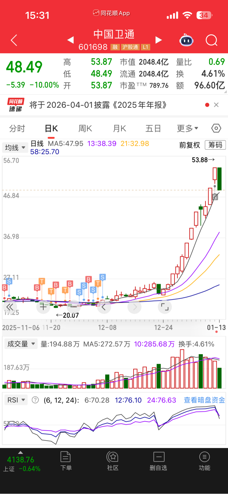 $中国卫通(SH601698)$ 感恩主力,感恩各位抬轿子