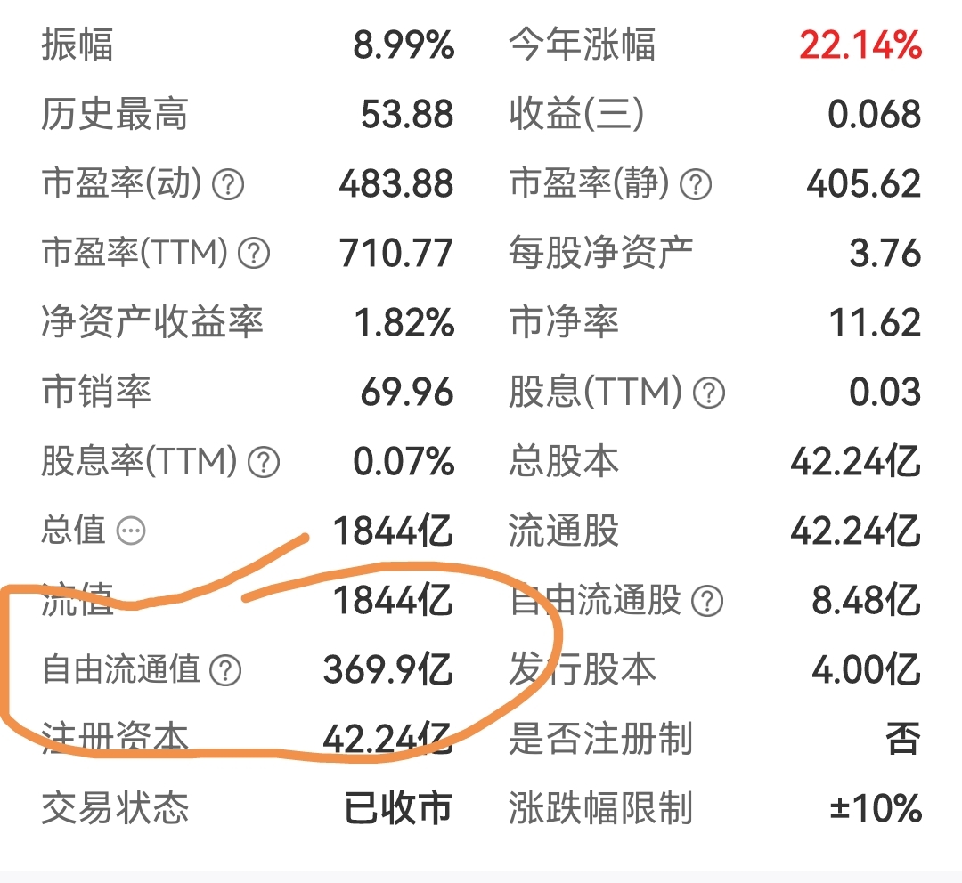 $中国卫通(SH601698)$ 369.9÷1,844≈20%的流通盘,两天换手率4.61+6.32=10.93,总共20%的流通盘。两天11%的换手率。