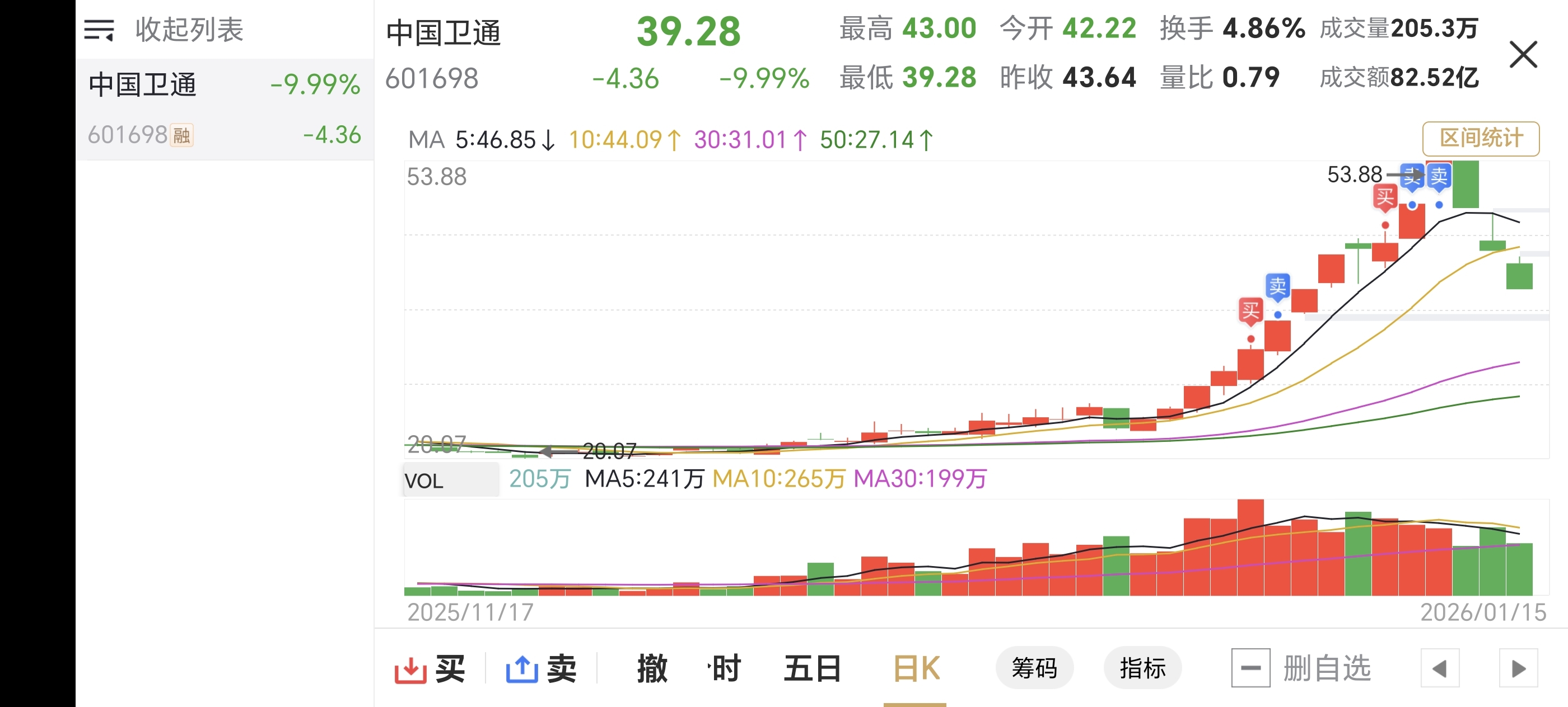 $中国卫通(SH601698)$ 我把这叫运气,暴风雨何时来临谁也把握不准