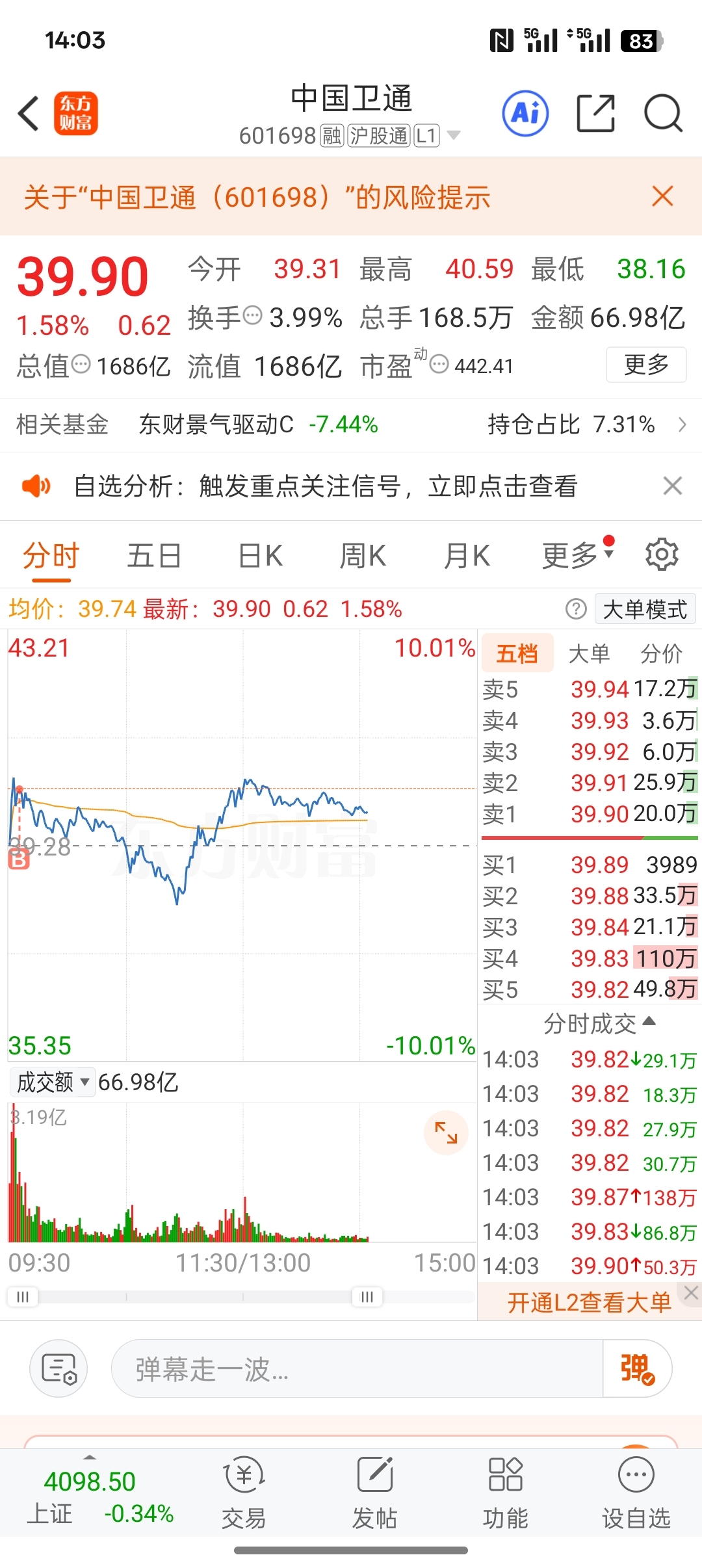$中国卫通(SH601698)$ 我不信主力这么好放我走