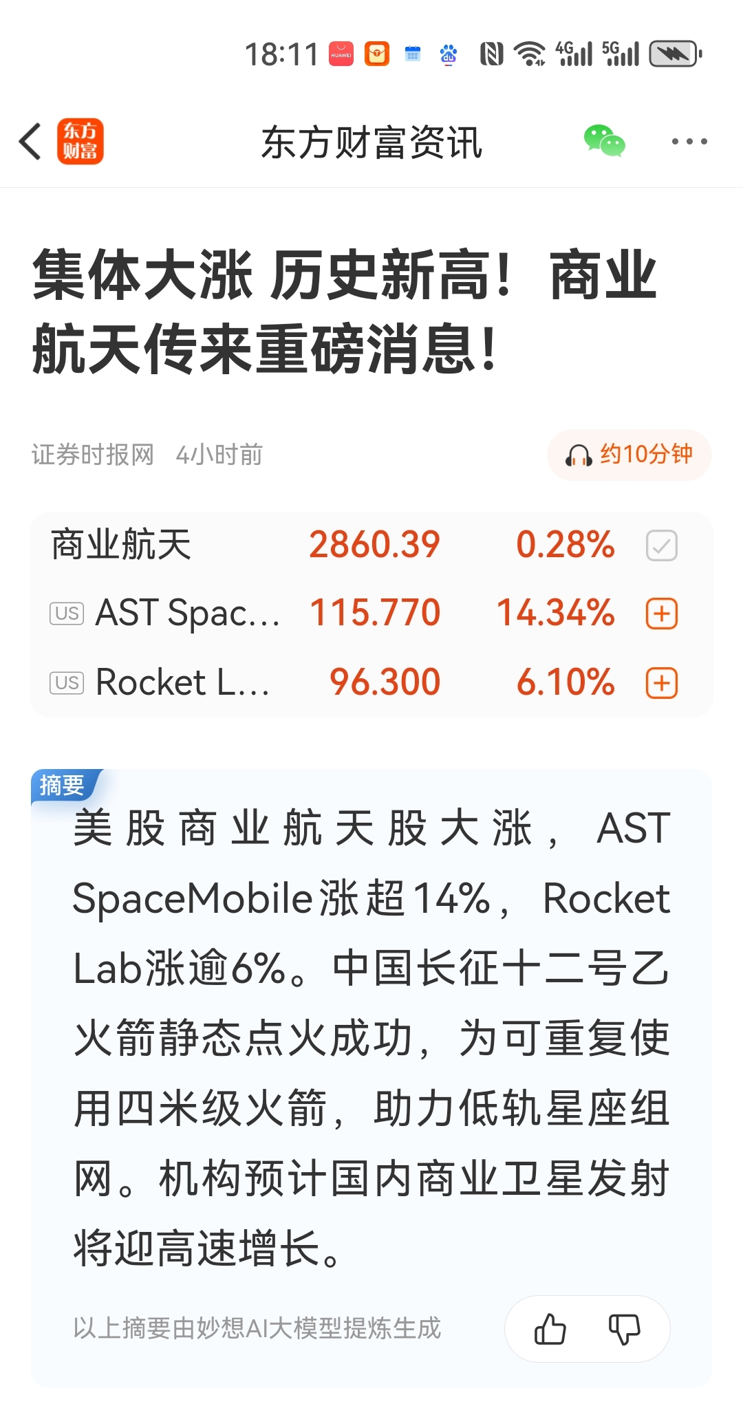 商业航天迎重大利好中国长征12号乙火箭静态点火成功!美股商业航天股大涨,ASTS