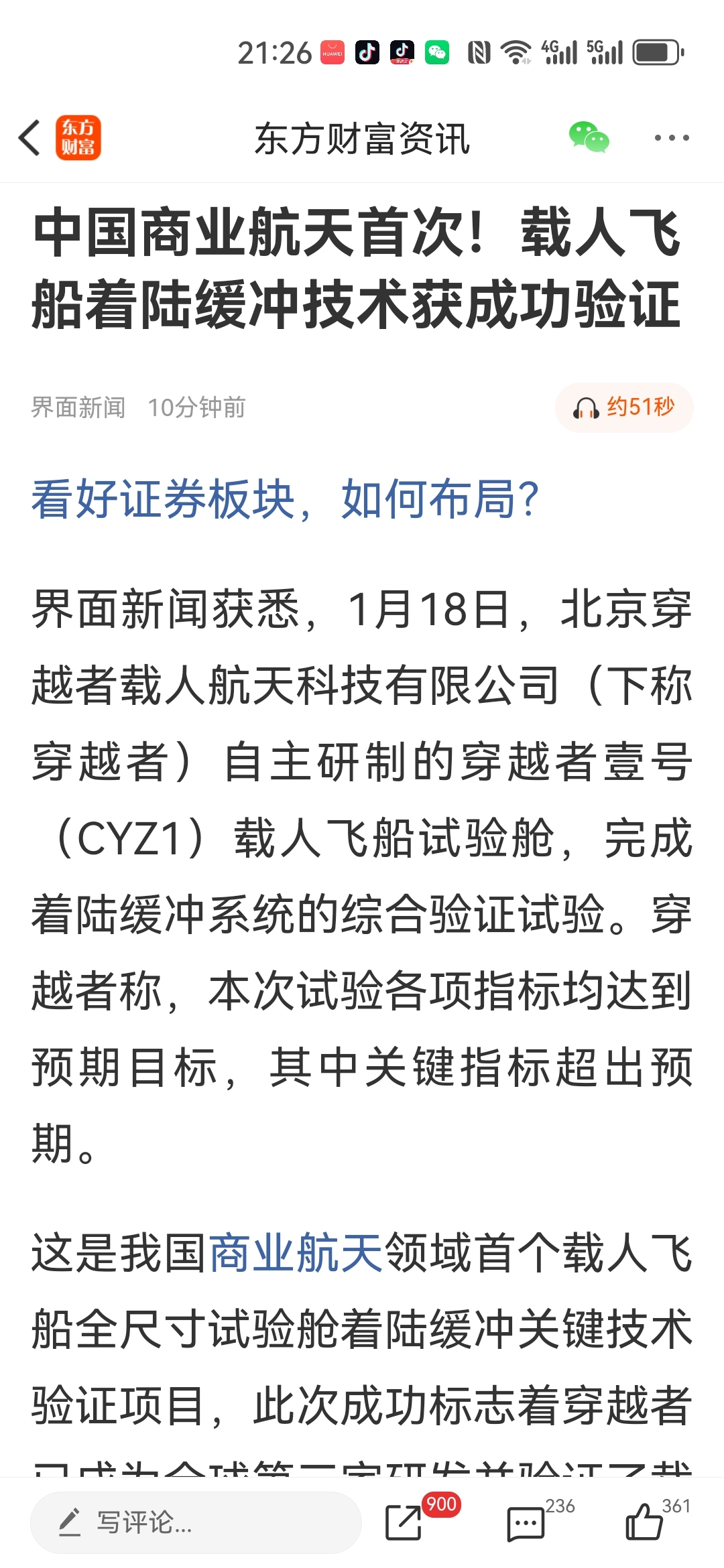 商业航天重大利好。就在10分钟前。中国商业航天首次!载人飞船着陆陆缓冲技术获成功