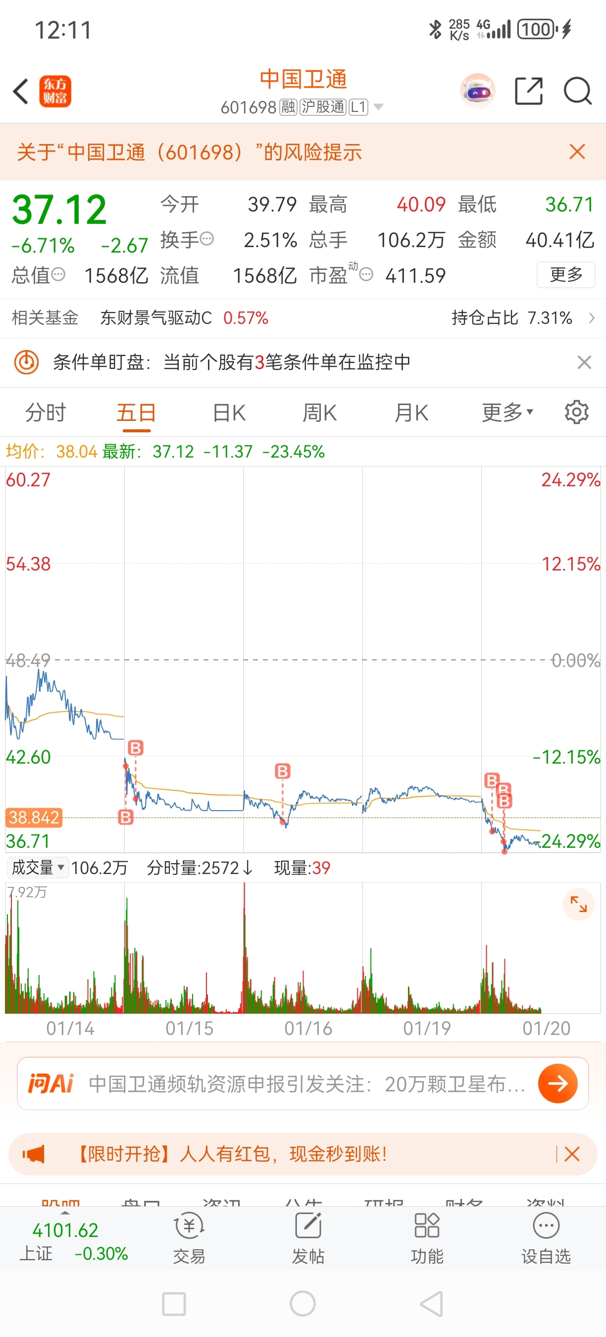 $中国卫通(SH601698)$ 不要怕,天塌下来有我帮你们顶着