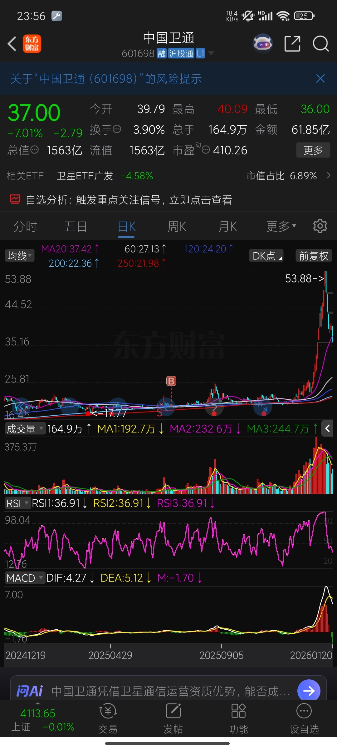 $中国卫通(SH601698)$ 天台的兄弟们,你们别跳了,再跳,这栋楼的均价要给你们跳没了