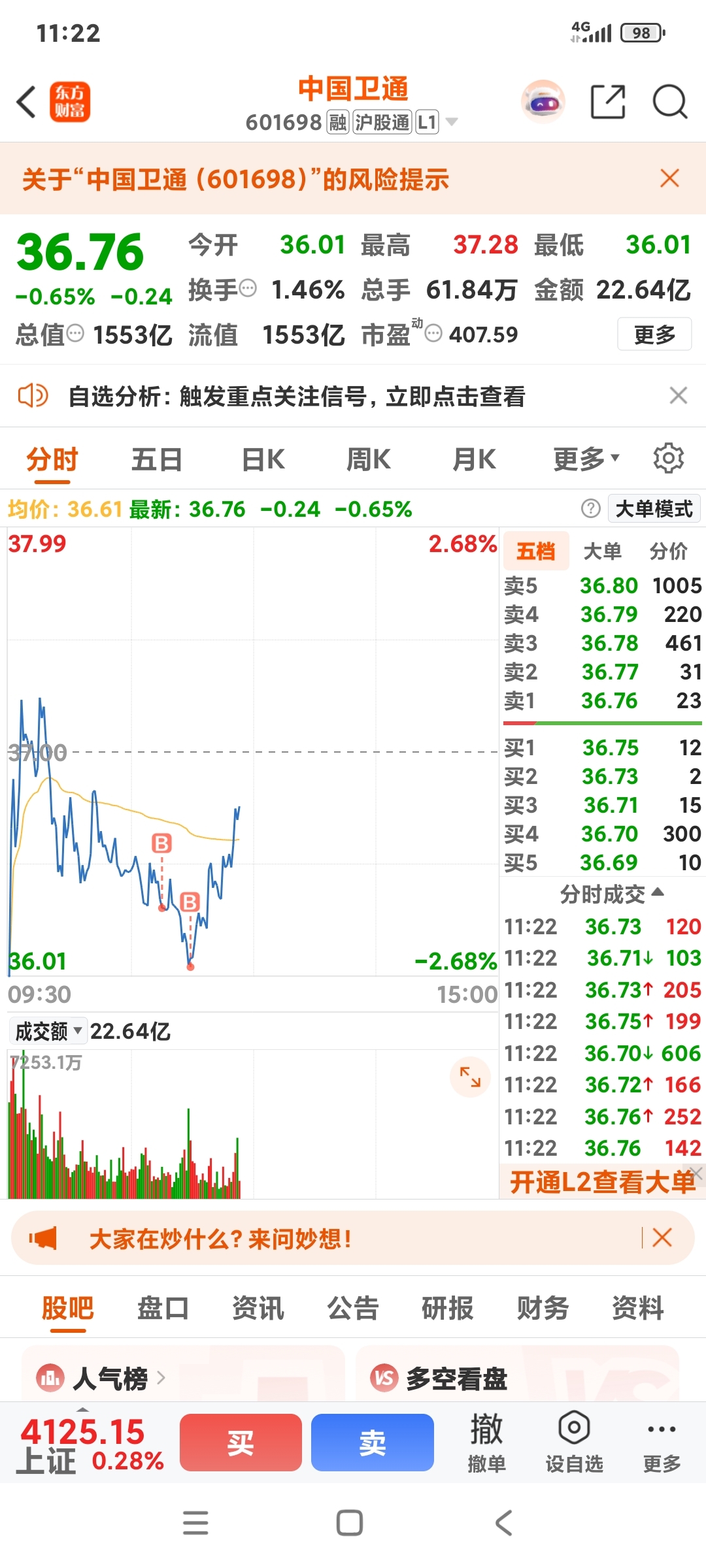$中国卫通(SH601698)$ 建仓即赚钱