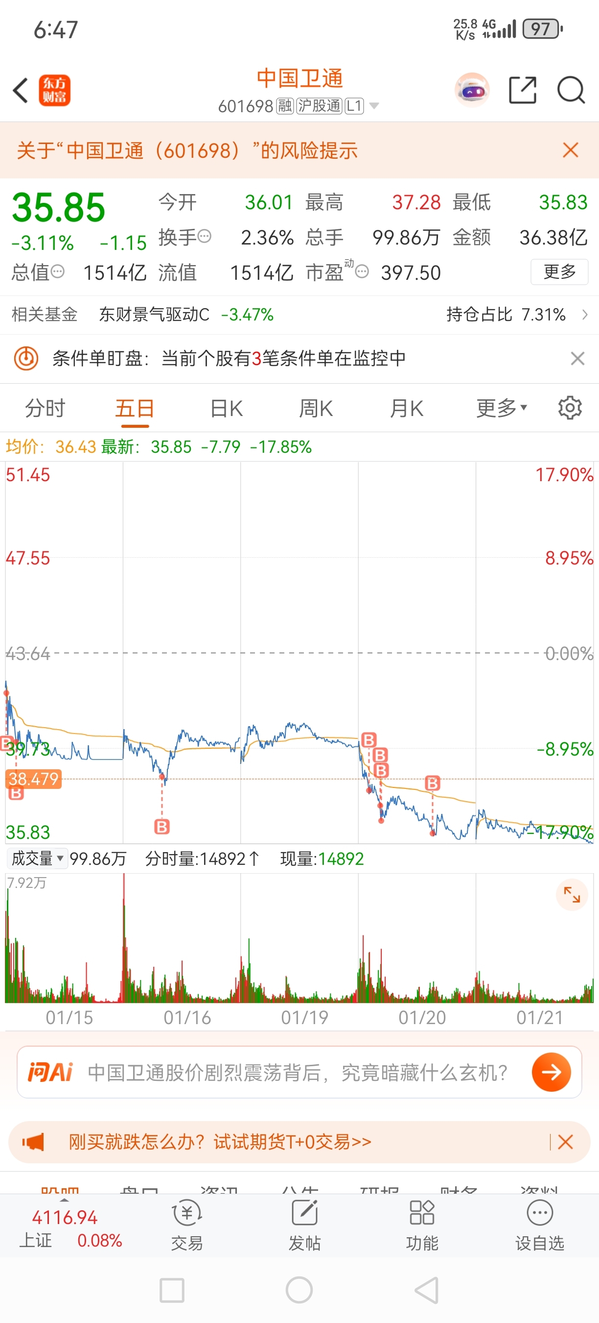 $中国卫通(SH601698)$ 买不完,根本买不完