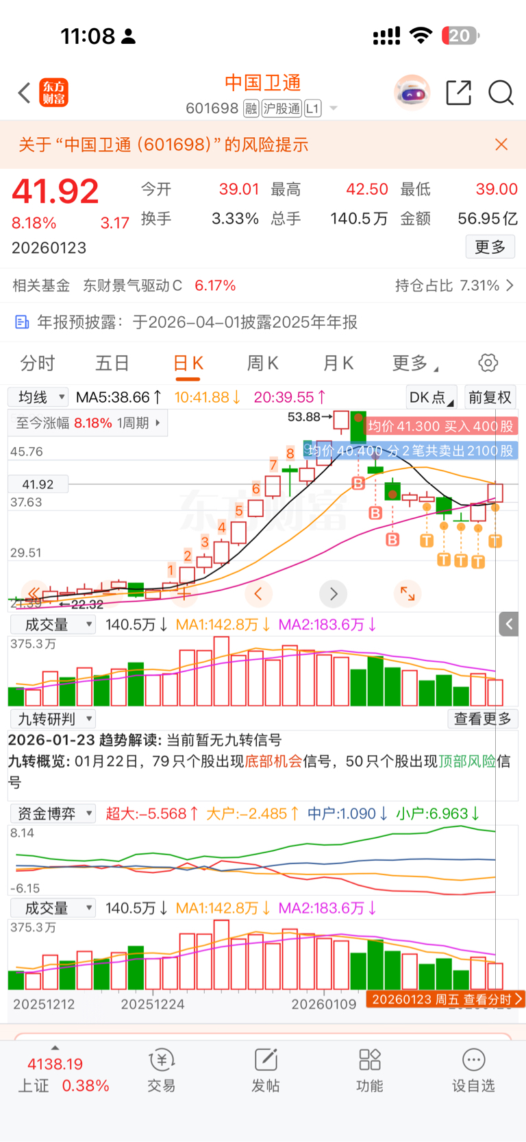 $中国卫通(SH601698)$ 不懂千万别t,t飞了,前面跌的时候又一直加仓,现在成本价t成68块钱了