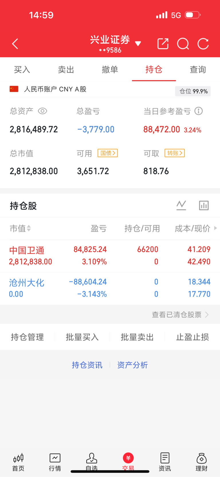 $中国卫通(SH601698)$ 打卡下班,上车了的兄弟姐妹,安心过周末,下周一起吃肉。兄弟姐妹没有点赞关注的关注一下,你们的支持就是我的动力
