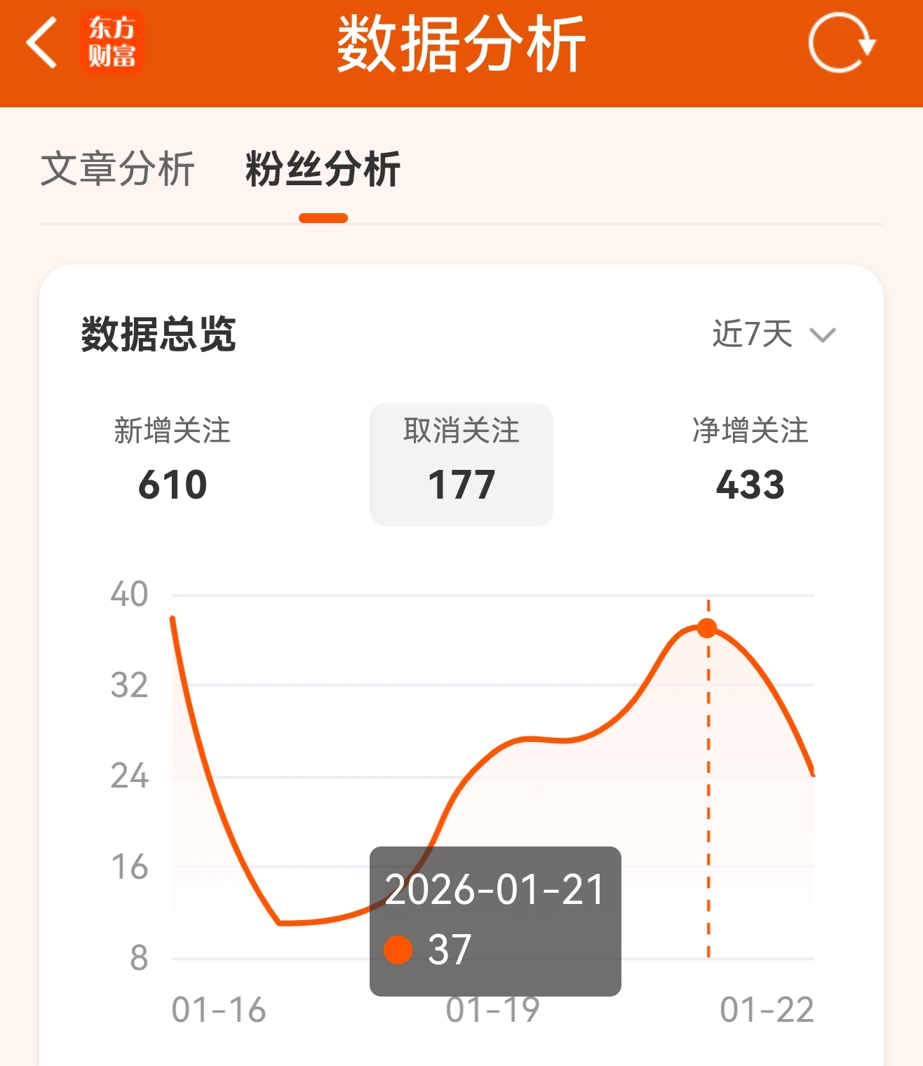 从17号到21号,取关的粉丝逐渐达到高峰,每天的粉丝是负增长,而20、21号是商业航天底部左侧入场点。