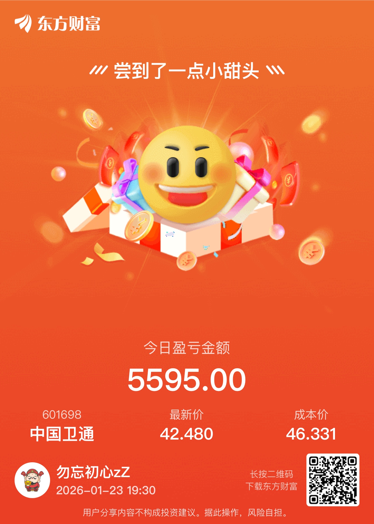 $中国卫通(SH601698)$ 低点亏1万6,终于回来一点,目前还亏5000多,周一希望再来一个涨停