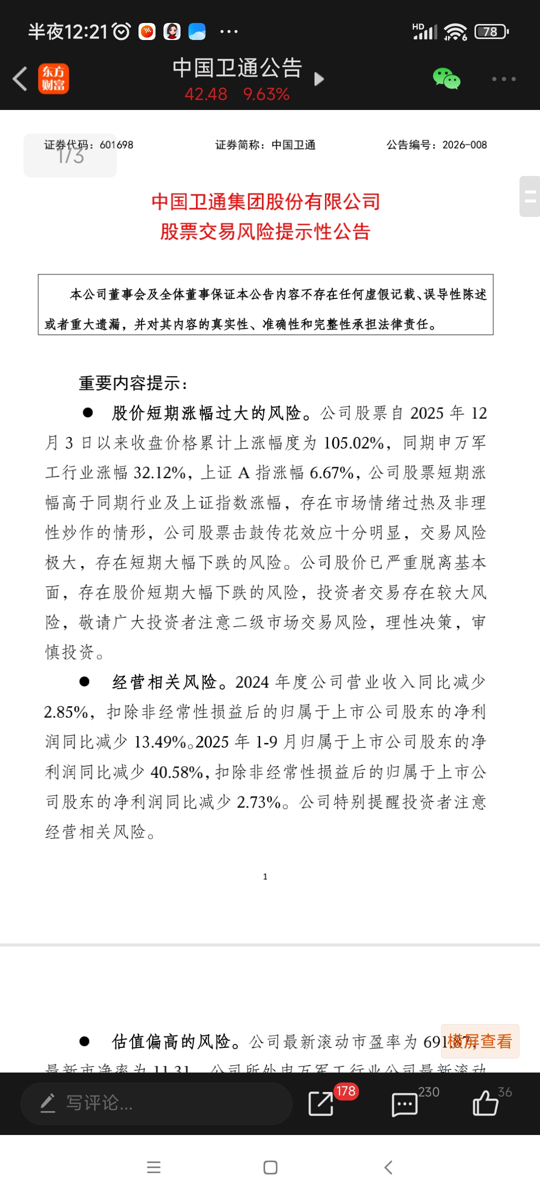 $中国卫通(SH601698)$ 一首凉凉送给大家,周一涨停
