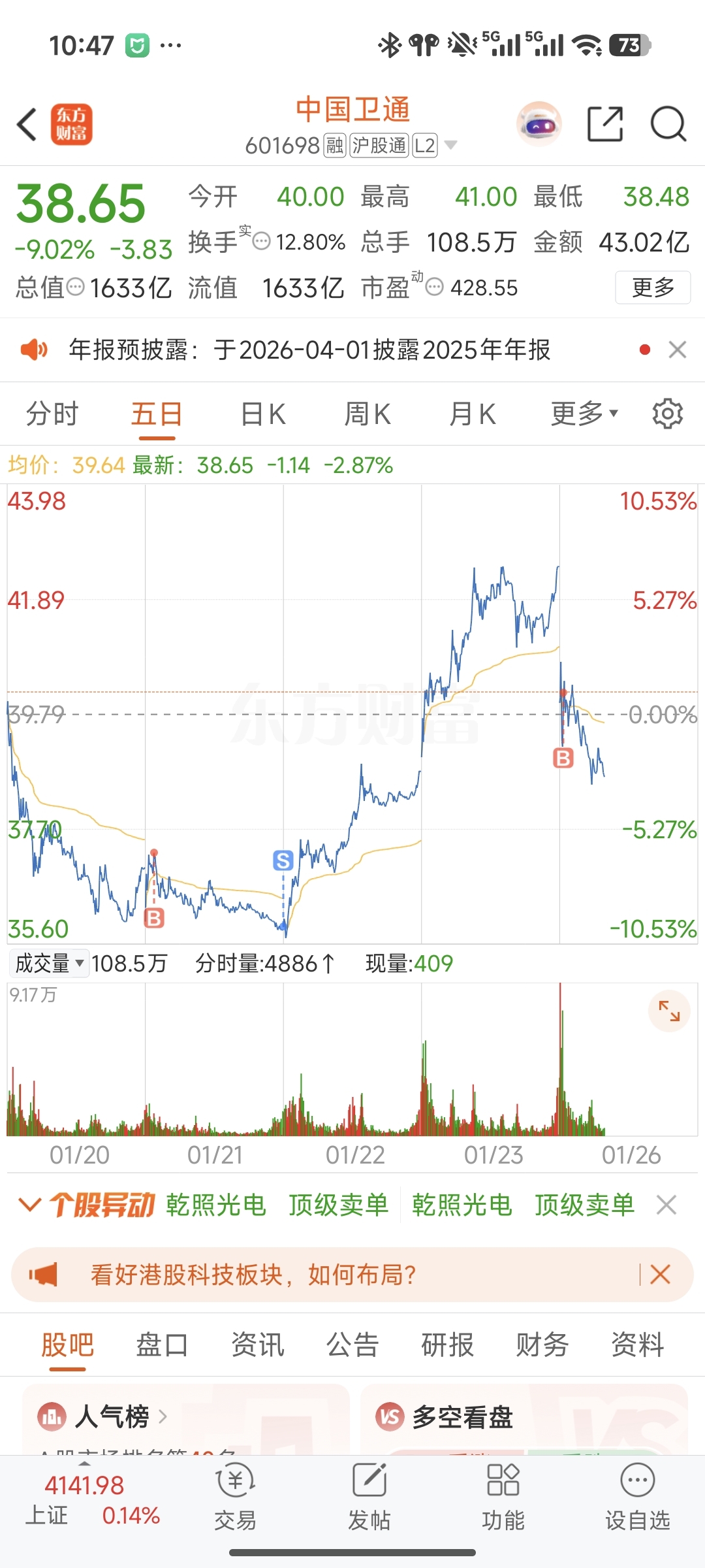 $中国卫通(SH601698)$ 我要报警了,就监控我