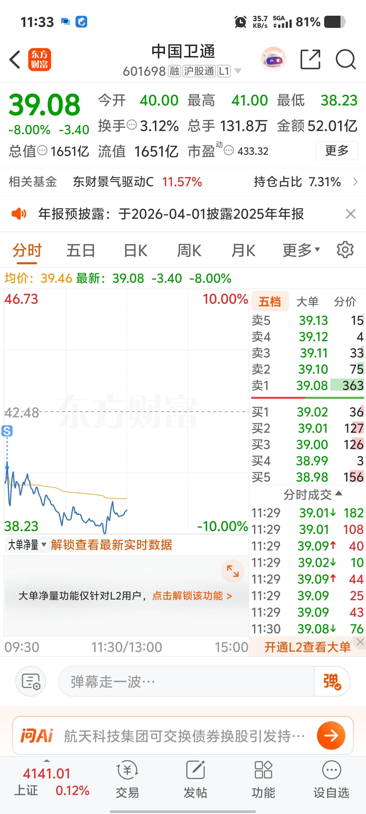 $中国卫通(SH601698)$ 集体低开那么多,有病啊!你们玩