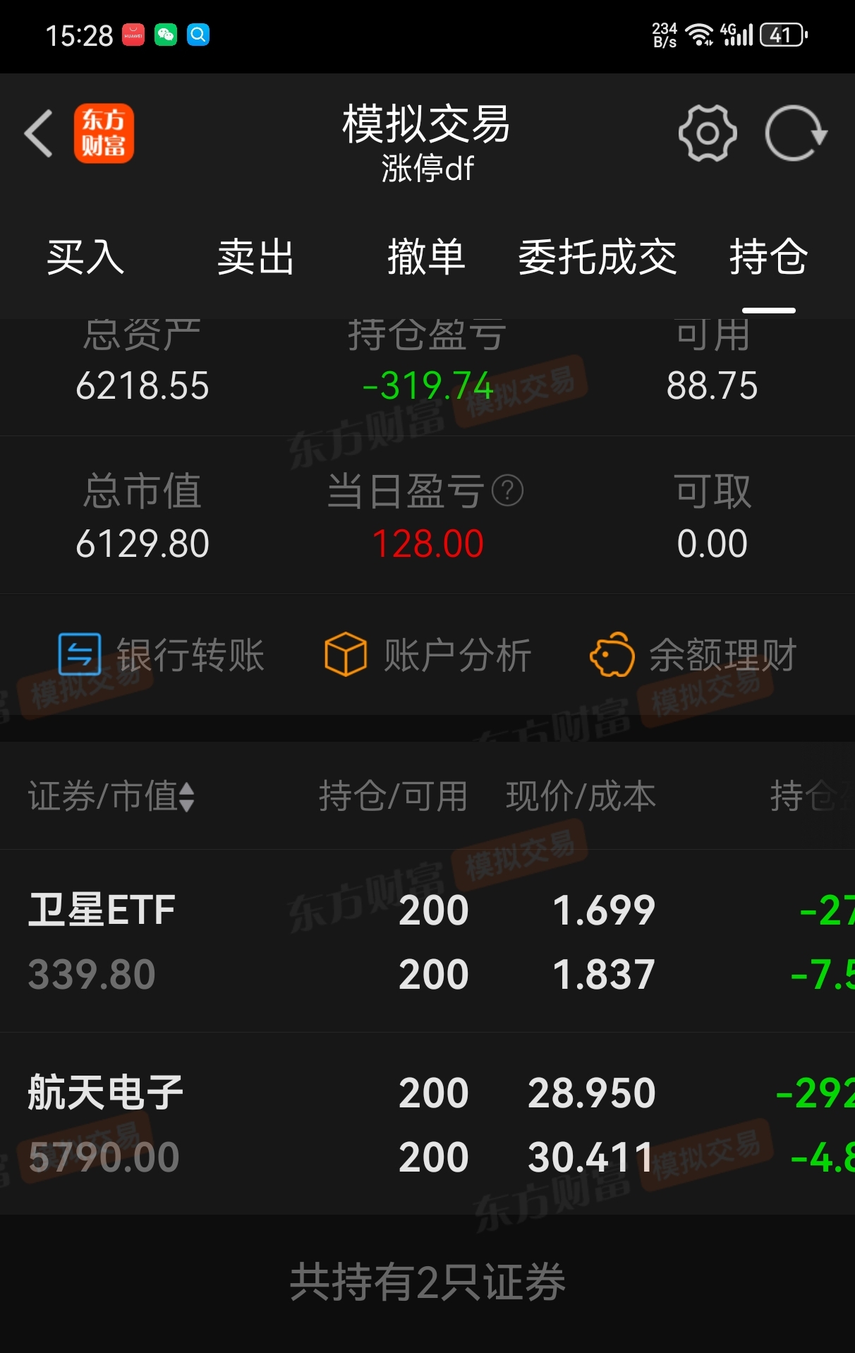 模拟盘未动