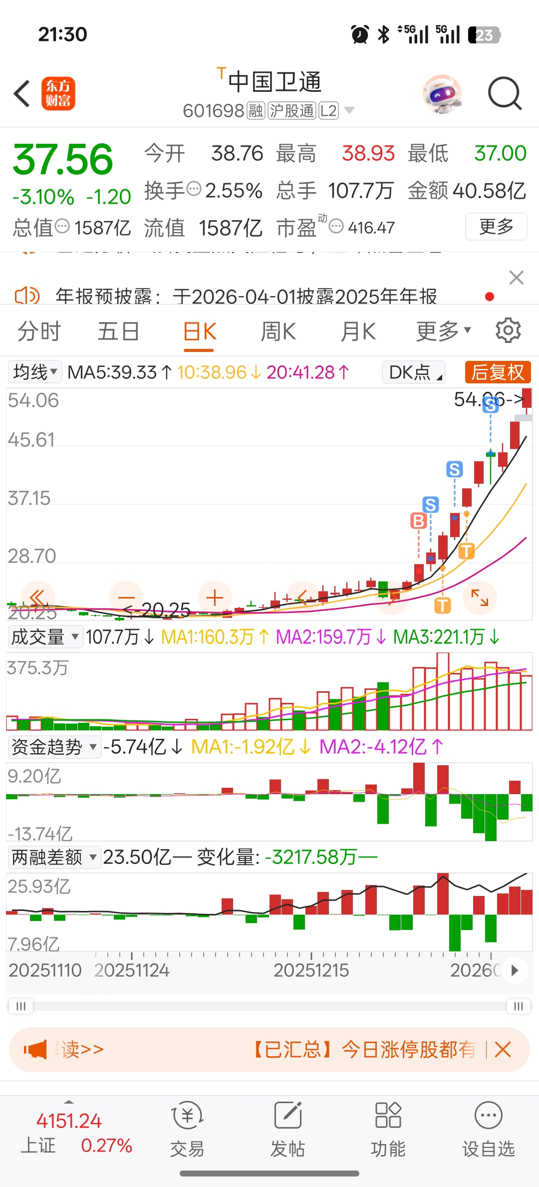 $中国卫通(SH601698)$ 吃到最甜的那一段,尽管后面还有两三个板,但也知足了。不贪,知足常乐。
