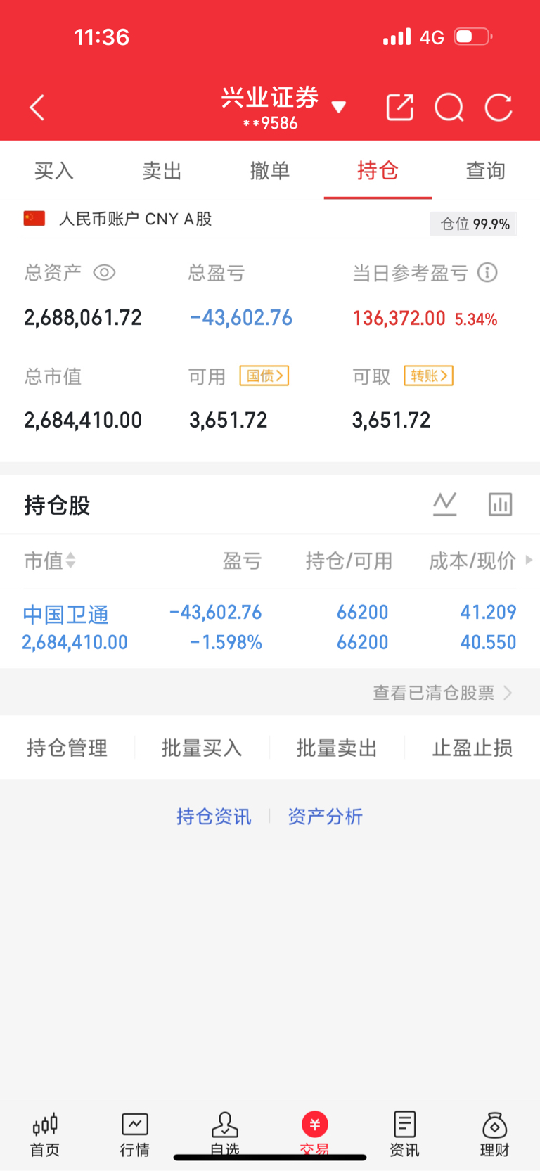 $中国卫通(SH601698)$ 低吸的兄弟姐妹可以选择高位获利卖出了我的话还有一点就回本了,继续格局,没有给龙叔点关注的兄弟姐妹点个关注