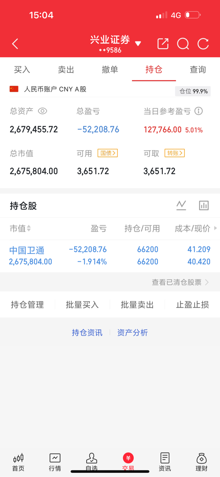 $中国卫通(SH601698)$ 打卡下班,我相信很多兄弟姐妹低吸的都吃上肉了,我还要两个点回本,继续持有,格局,期待明天吃上肉,没有点赞关注的给龙叔点赞关注一下