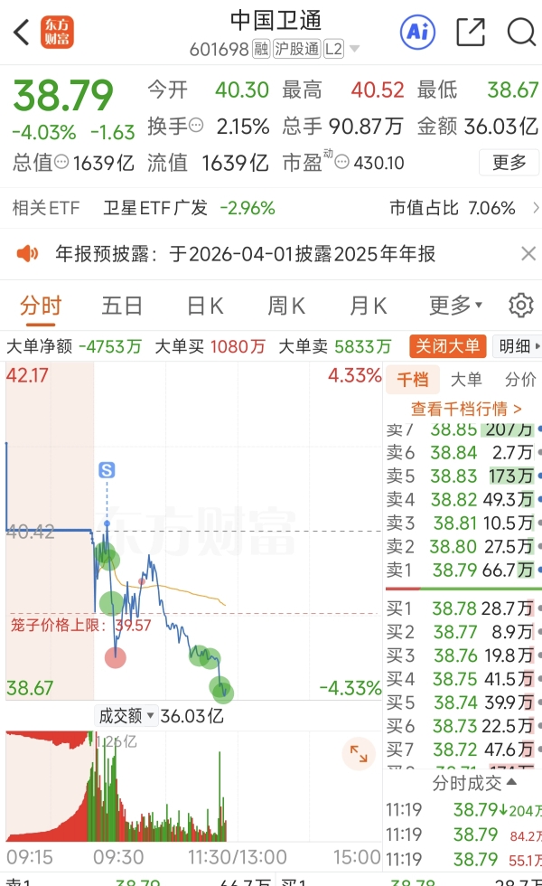 $中国卫通(SH601698)$ 高抛低息先出来。等到支撑了再进。