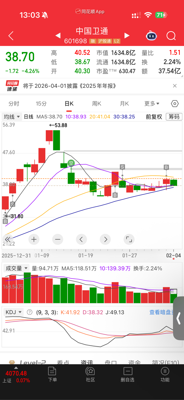 $中国卫通(SH601698)$ 死m,买一次亏一次