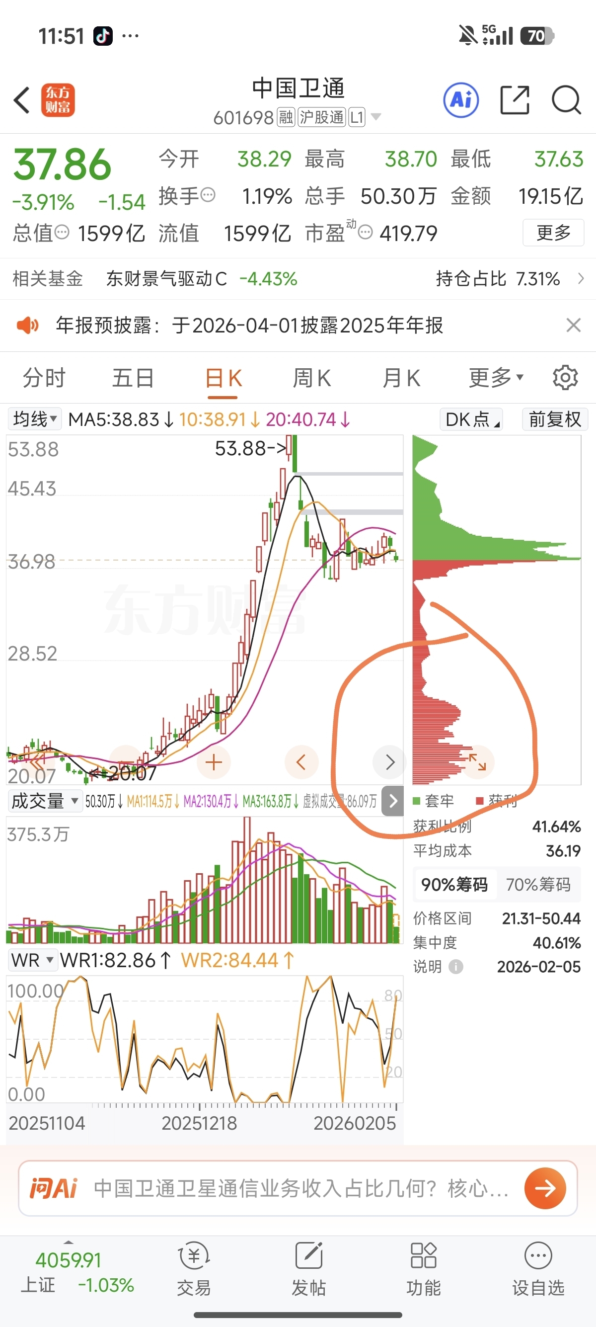 $中国卫通(SH601698)$ 感觉底部二十的筹码不松动,很难开启二浪
