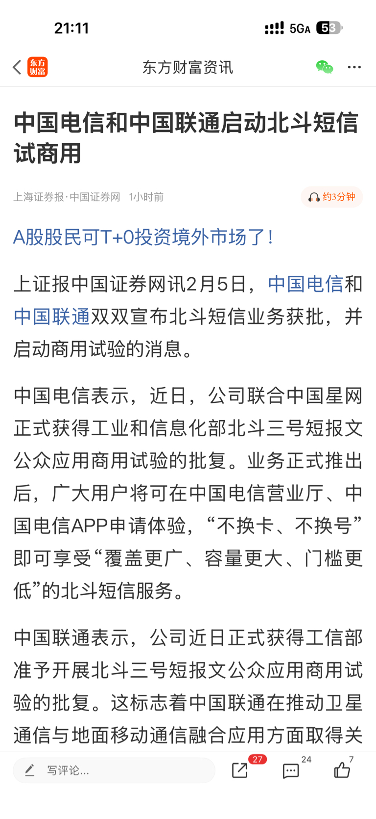 $中国卫通(SH601698)$ 手机直连卫星啥时候彻底放开,虽然卫通主要是做高轨卫星,但总会对其业务有促进。