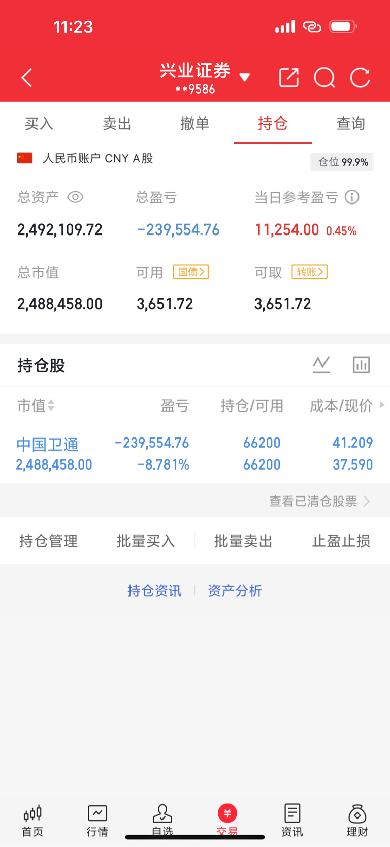 $中国卫通(SH601698)$ 还在车上,不管盈亏我都会真实公布,有赚有亏是很正常的事情,没有点赞关注的关注一下龙叔谢谢