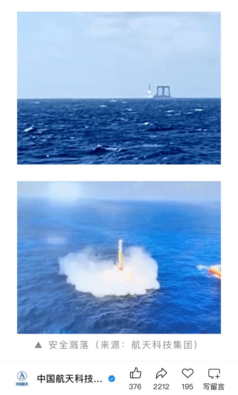今天为了安全起见,并没有实施真正的回收!只是让火箭受控降落在海面。