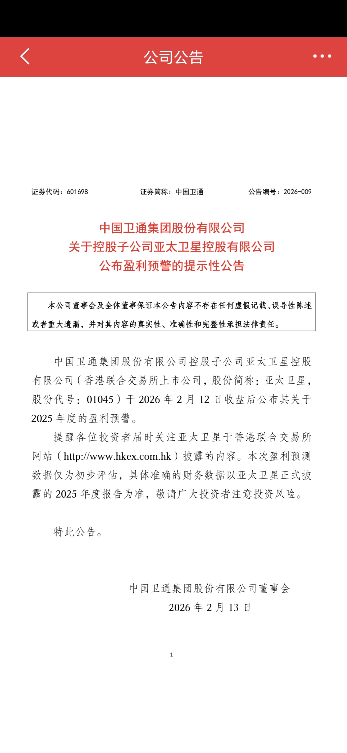 $中国卫通(SH601698)$ 公告,雷