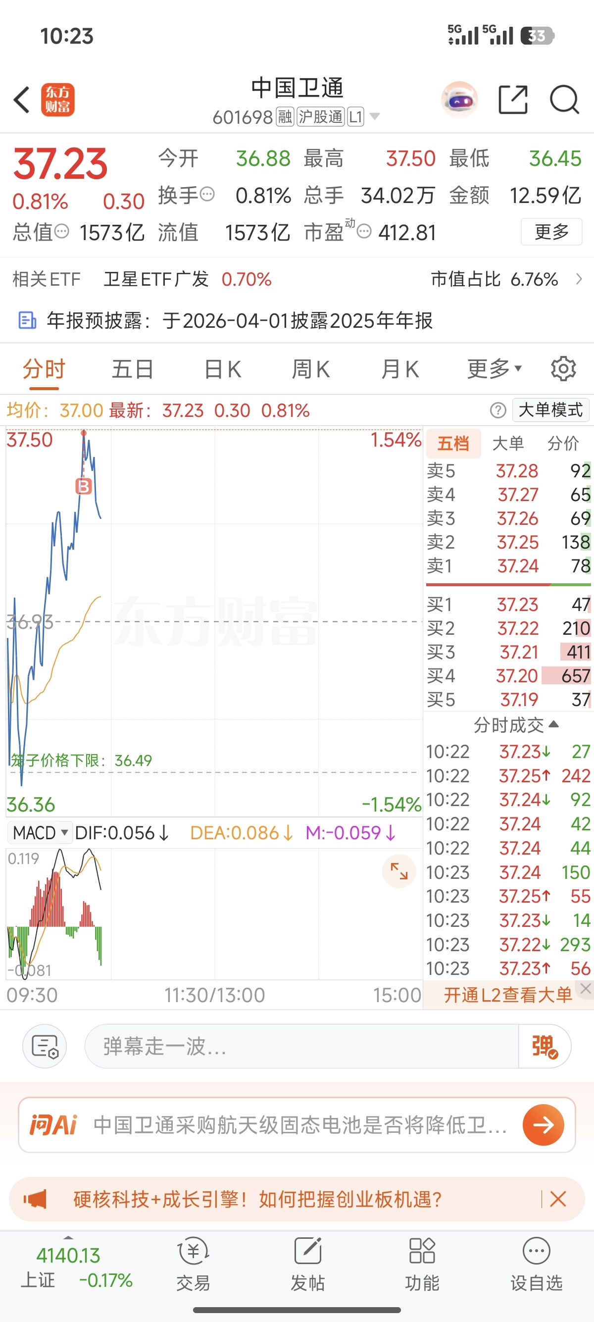 $中国卫通(SH601698)$ 我买蹦了 对不起大家