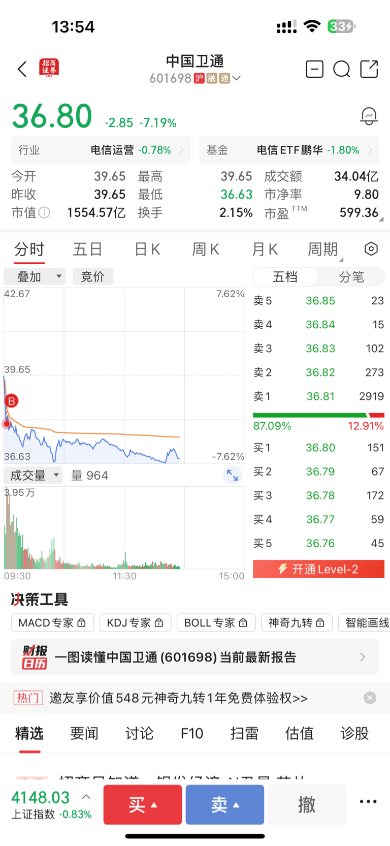 $中国卫通(SH601698)$ 被我买崩了。。。
