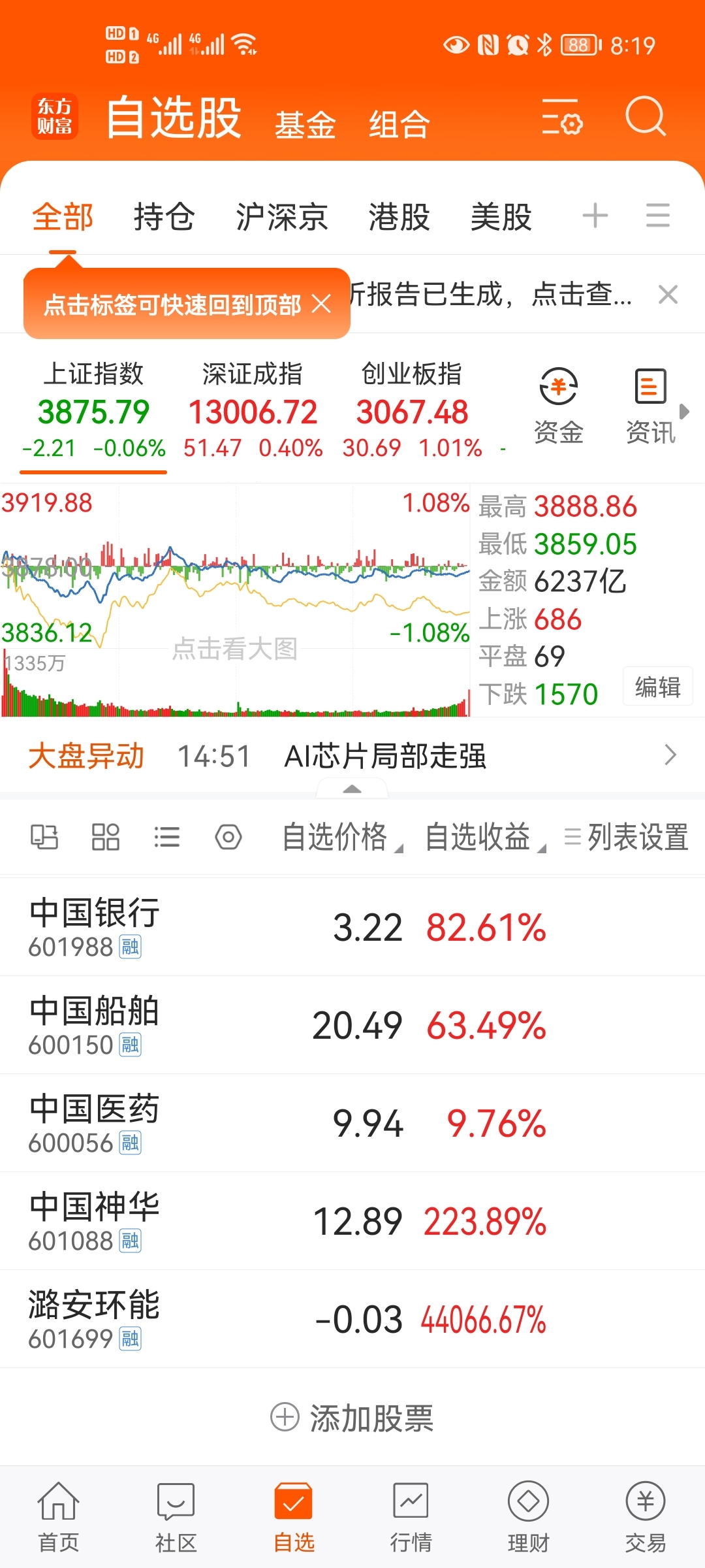$潞安环能(SH601699)$ 加自选里面竟然涨4万多多了成本0.03了