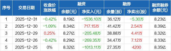 潞安环能:融资净偿还1536.1万元,融资余额8.19亿元(12-31)