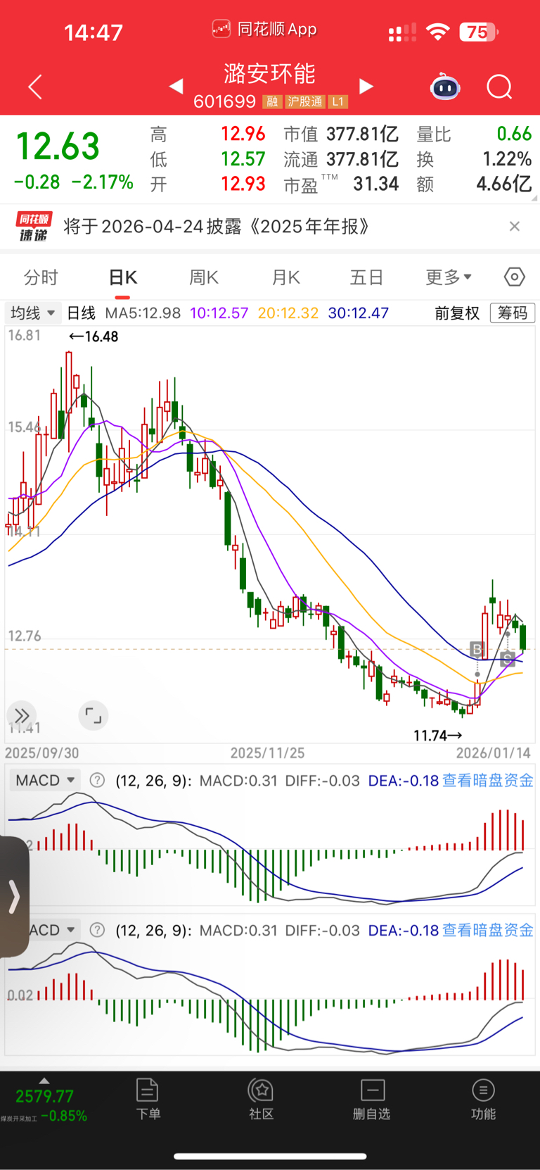 $潞安环能(SH601699)$ 这股需要高抛低吸呀,跟着期货行情走,喝口汤就要撤。不抗跌