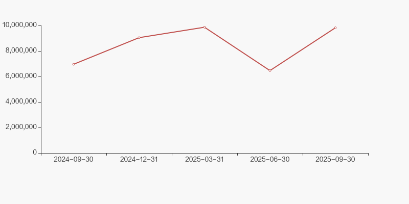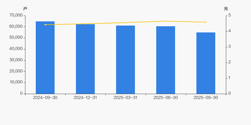 自2024年9月30日以来,公司股东户数连续4期下降,截至目前减幅为15.25%。2024年9月30日至2025年9月30日区间股价上涨3.59%。