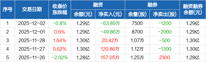 风范股份:融资净偿还63.89万元,融资余额1.29亿元(12-02)