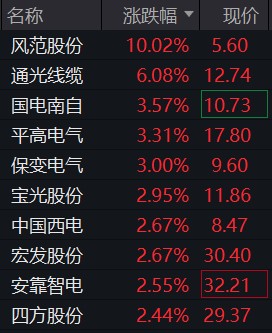 板块异动|特高压概念板块持续活跃 风范股份涨停