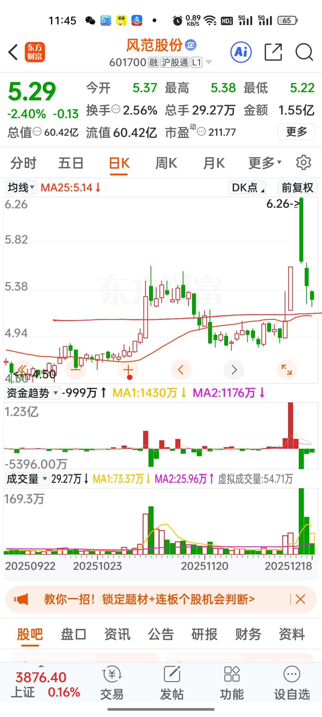 $风范股份(SH601700)$ 红线就是警示线,是去是留注意这条线